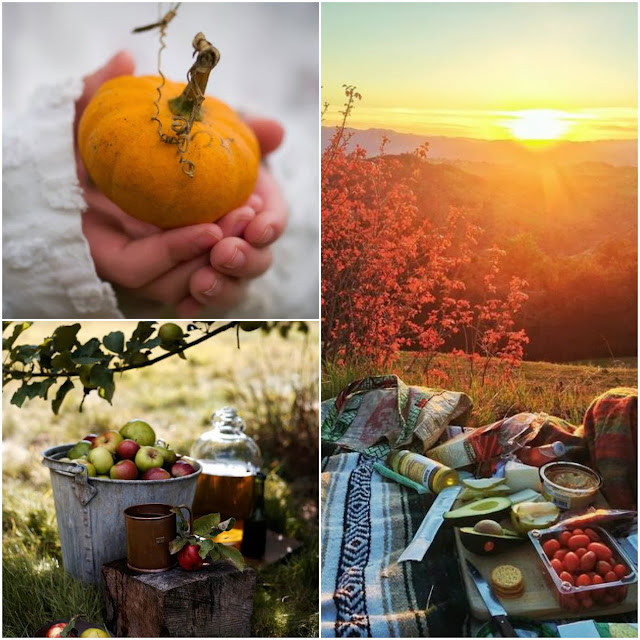 Amo l'autunno perchè è il giusto e meritato riposo dopo il clamore dell'estate ed è il preludio al silenzioso inverno. Lo amo per i suoi colori così accesi ma così dorati e morbidi. Per il suo profumo di legna, di mele cotte nel forno, di pioggia e foglie bagnate. per le passeggiate nei boschi, quando fra le fronde alte degli alberi, fa capolino la luce soffusa di un sole un pò stanco...Lo so che per me è più facile sentire questo perchè non vivo in città ma, con un pò di immaginazione....chiudete gli occhi...lo sentite?